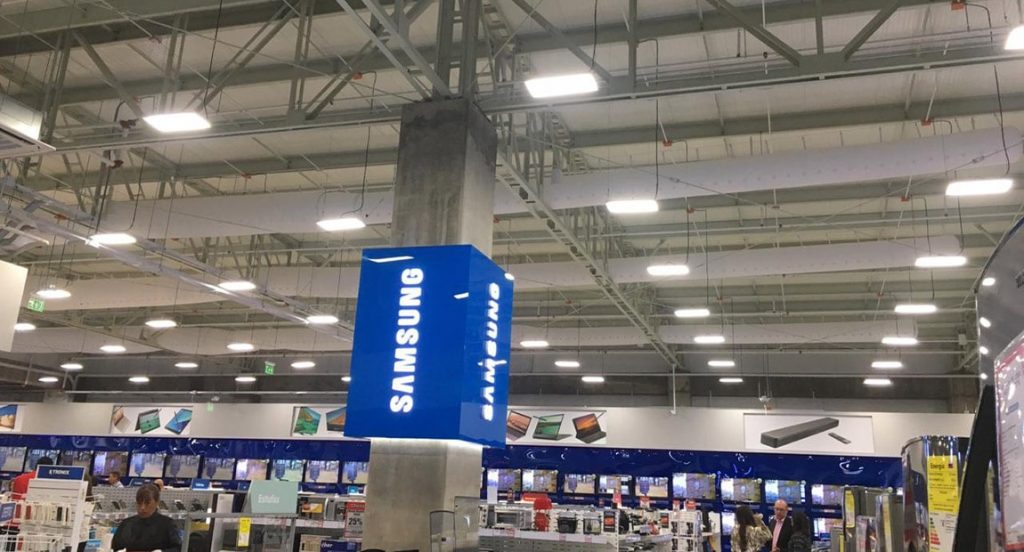 Este proyecto generó confort para una tienda de electrodomésticos, usando 2 máquinas de enfriamiento evaporativo de 14.000 cfm, transportando y distribuyendo el aire por medio de ductos textiles longitudinales de 22m, tramos rectos, con multidifusión, no fue necesario ramificaciones para obtener buena distribución de aire.